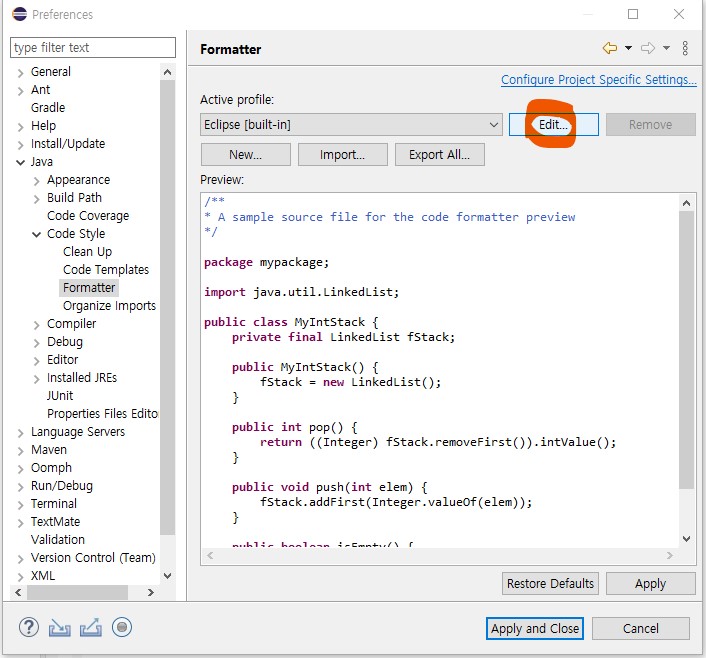 1. Window -> Preferences (or Eclipse -> Preferences)